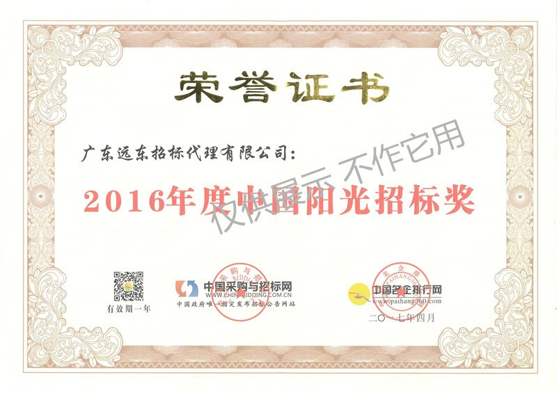 2016年度中國陽光招標(biāo)獎(jiǎng)